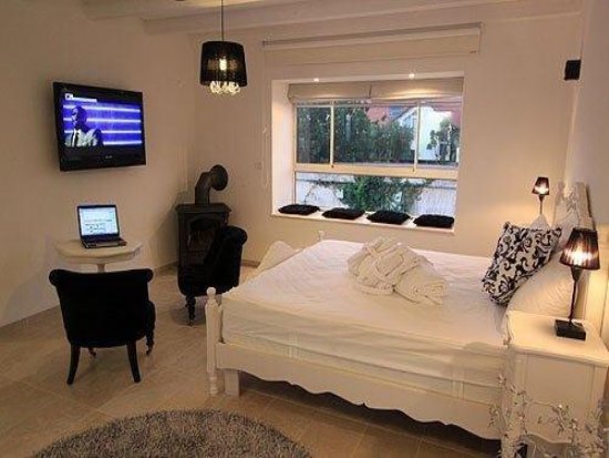 Ensuite ranza, A / C ünitesi, Duş, WC, Tekli lavabo ile Yatak Odası