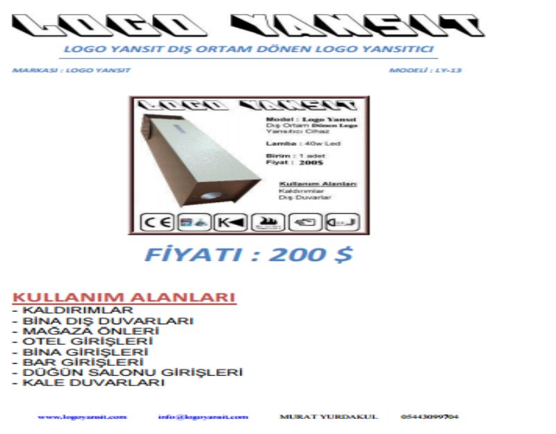 Logo Yansıtma Adedi : 1 adet Dönen Logo Yansıtır.