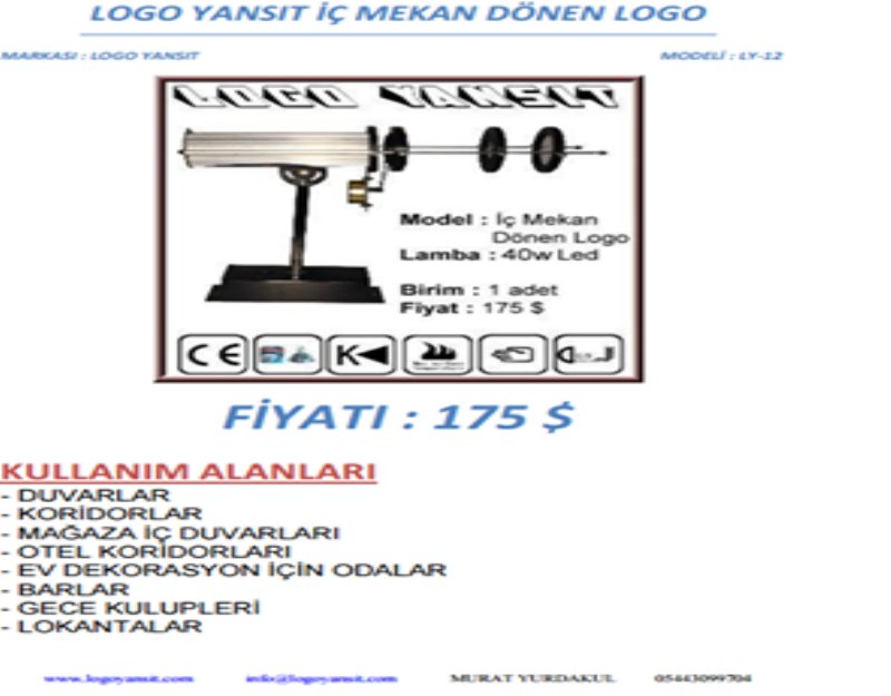 Logo Yansıtma Adedi : 1 adet Dönen Logo Yansıtır.